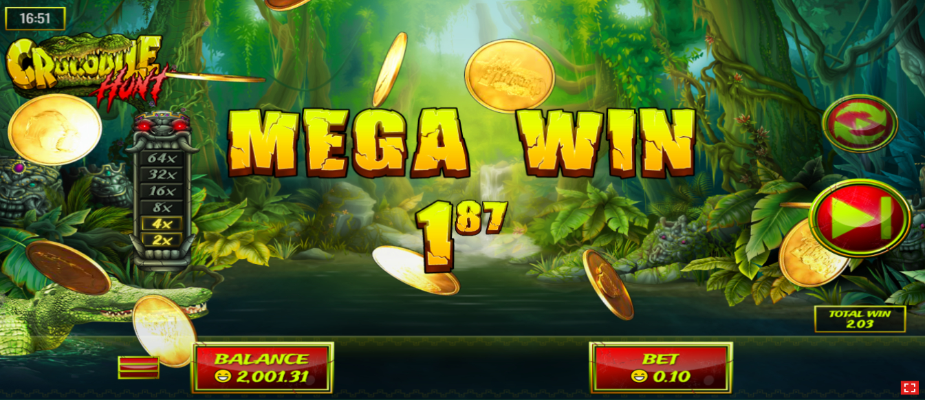 Pour les joueurs souhaitant découvrir la machine à sous Crocodile Hunt sans miser d'argent réel, le mode gratuit est idéal. Ce mode vous permet de jouer avec des crédits virtuels et de vous familiariser avec ses mécanismes, ses fonctionnalités et ses gains. Le mode gratuit est parfait pour tester différentes stratégies de mise, comprendre les bonus ou simplement profiter de la machine à sous pour le plaisir. C'est une façon sûre de savourer l'excitation du jeu, particulièrement utile pour les débutants ou ceux qui jouent aux machines à sous pour le plaisir. En essayant Crocodile Hunt en mode gratuit, vous pouvez acquérir une compréhension approfondie du jeu avant de décider de miser de l'argent réel.