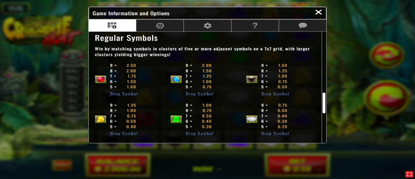 Imaginez un voyage palpitant au cœur d'une nature sauvage et indomptée avec la toute dernière création de Rival. Ce rêve devient réalité grâce à la machine à sous Crocodile Hunt de Rival, un jeu à gains groupés offrant une vaste grille 7x7 sur fond de jungle luxuriante et mystérieuse regorgeant de trésors cachés. Crocodile Hunt promet une aventure riche en adrénaline où les joueurs tentent de former des groupes en reliant cinq symboles ou plus, horizontalement ou verticalement.